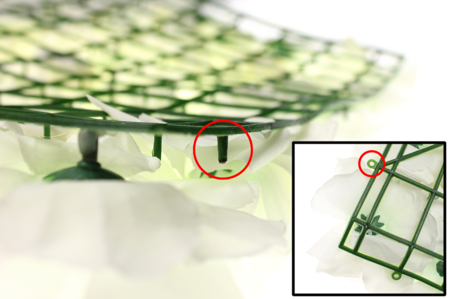Wunderschöne Textilrosen und Hortensien auf Kunststoffgitter zum Verkleiden von Wänden, Säulen oder Ähnlichem.