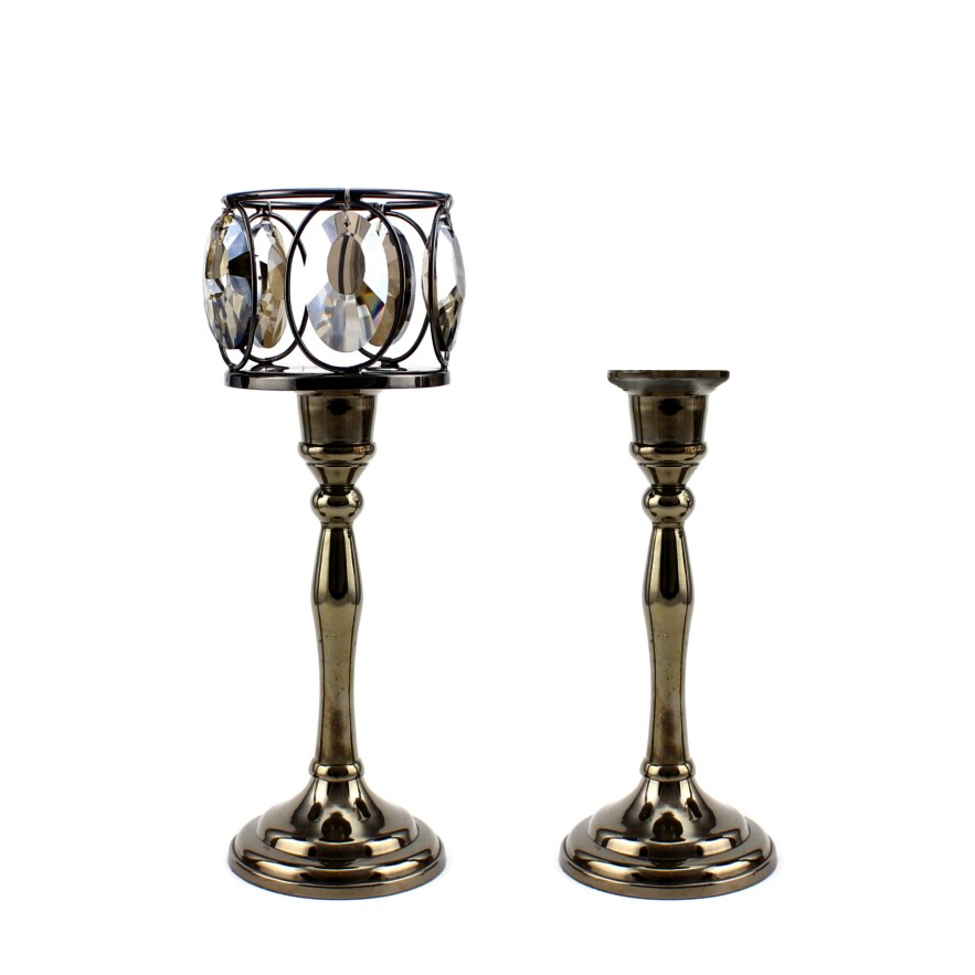 - Einarmige 2-in-1 Ständer aus Metall in Nickelschwarz mit Glaskristallen.