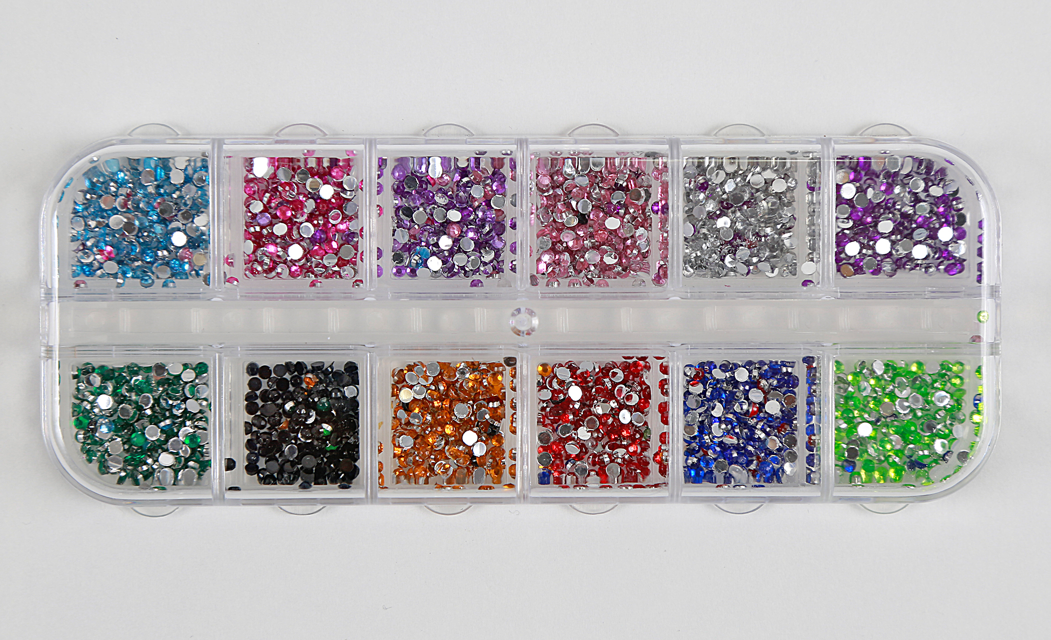 Set bestehend aus über 2000 Strasssteinen aus Kunststoff in 12 verschiedenen Farben mit Box.